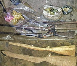 Two persons identified as Jiten Loktah (55) and Kon Rongpi (37) have been arrested in this connection. Among the items seized from the factory include a civet cat skin, two single-barrel guns, one air gun barrel, and an iron pipe.